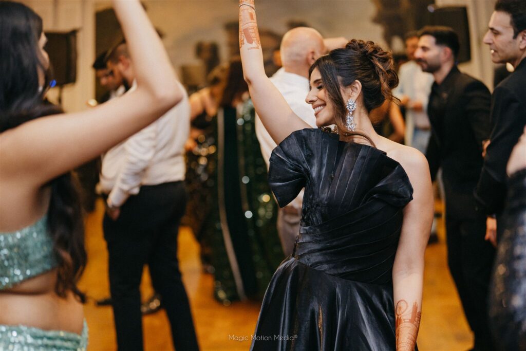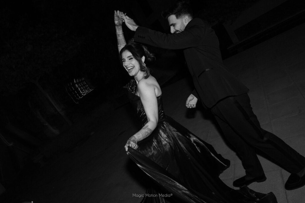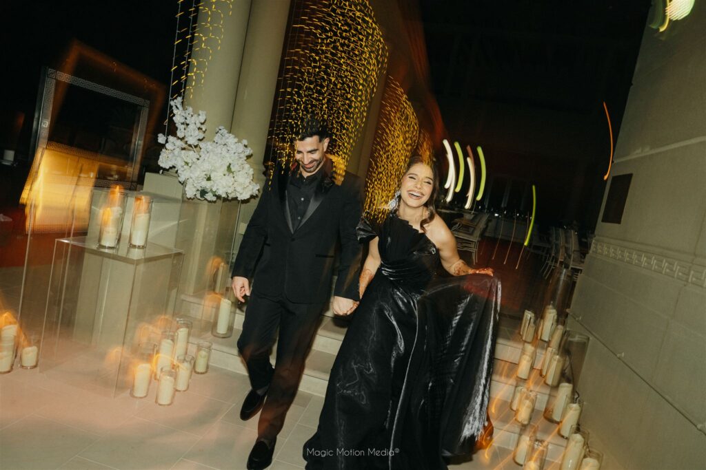 We ended our celebrations with a grand reception inspired by Hollywood Noir. The ballroom had crystals hanging from the ceiling, a black and white stage and lighting that created old-world cinematic charm. It felt polished and sophisticated. Every detail was elegant and perfectly balanced. #FoundNimo