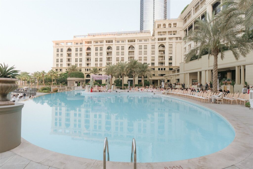 Our pheras were everything we had dreamed about. The pastel pink and white mandap was set over the Versace pool looking like a floating mandap overlooking the waterfront. The soft colours and the calm atmosphere created a divine sense of peace.