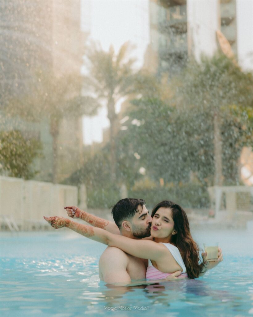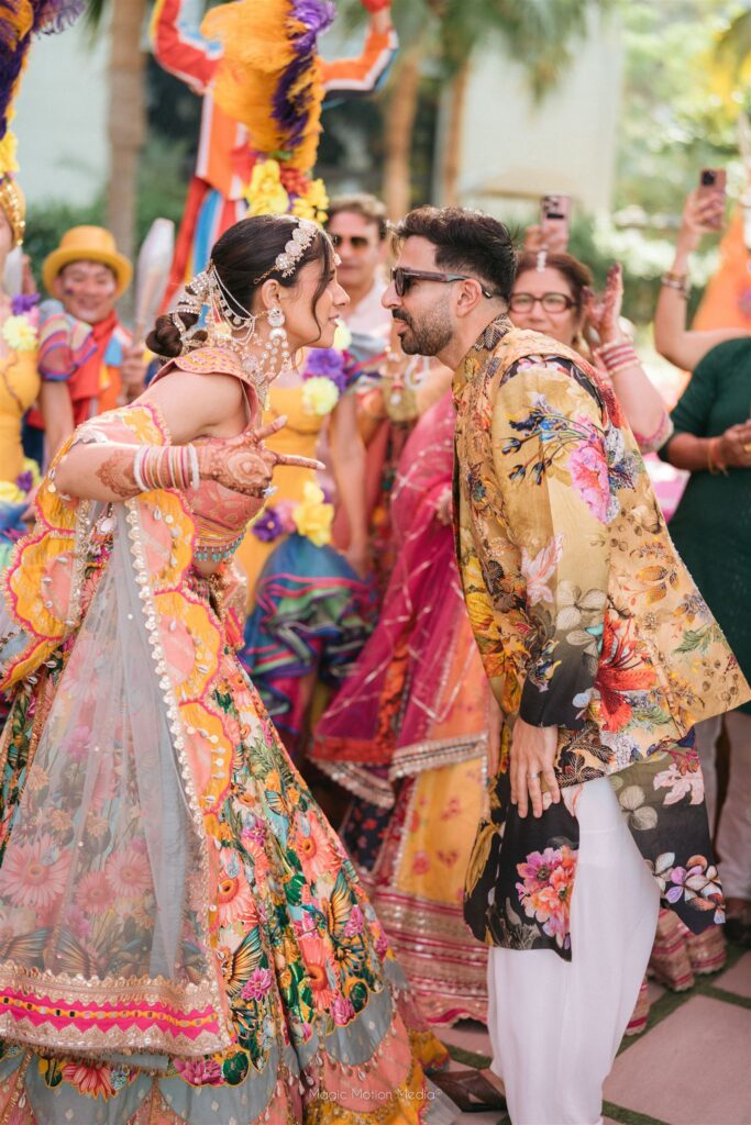 Nidhi wore Liz Paul, and Mohak wore Varun Bahl.